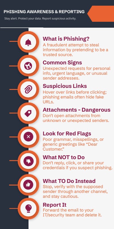 Don’t reply, click, or share your credentials if you suspect phishing.