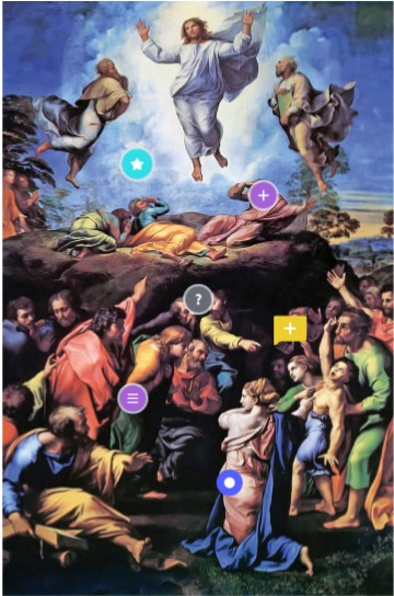 This painting represents two different Gospel stories; the upper half is shoing the moment of Transfiguration, while the bottom half shows nine apostles failing to heal a possessed demon-boy. Both of these stories should have been well known the public and reasonable easy to idenify. While the connection of the two are unknown before Klienbub; he theorizes that they both represent different narratives occuring at the same time in different places, as well as guide the eye from physical vision to imaginary then intellectual vision.