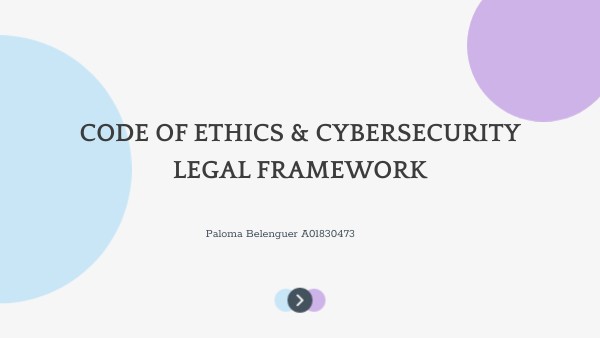 ACM. (2018). ACM Code of Ethics and Professional Conduct. Association for Computing Machinery. https://www.acm.org/code-of-ethics UNESCO. (2021). Recommendation on the Ethics of Artificial Intelligence. UNESCO. https://www.unesco.org/en/artificial-intelligence/recommendation-ethics Pérez, J., & Espino, A. (2024). Iniciativa de Ley Federal de Ciberseguridad. Congreso de la Unión, México. European Union. (2016). General Data Protection Regulation (GDPR). Official Journal of the European Union. European Union. (2019). Cybersecurity Act. Official Journal of the European Union. European Union. (2016/2023). Directive on Security of Network and Information Systems (NIS/NIS2). Official Journal of the European Union.