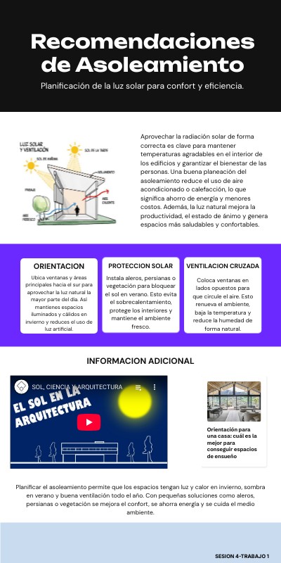 Planificar el asoleamiento permite que los espacios tengan luz y calor en invierno, sombra en verano y buena ventilación todo el año. Con pequeñas soluciones como aleros, persianas o vegetación se mejora el confort, se ahorra energía y se cuida el medio ambiente.