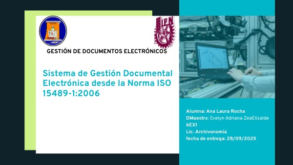 La Gestión de Documentos de Archivo ISO 15489; UNAM, Dr. Jovv Valdespino Vázquez mayo de 2021; enlace: Diapositiva 1 ; consultado el 23/09/2025