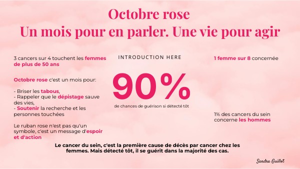 Octobre rose c'est un mois pour: - Briser les tabous, - Rappeler que le dépistage sauve des vies, - Soutenir la recherche et les personnes touchées Le ruban rose n'est pas qu'un symbole, c'est un message d'espoir et d'action