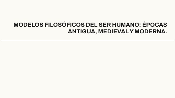 Modelos filosóficos del ser humano: épocas antigua, medieval y moderna.