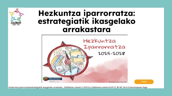 Hezkuntza iparrorratzaestrategiatik ikasgelako arrakasta:. Zaldibarko eskola © 2025 by Zaldibarko eskola HLHI CC BY-NC-SA 4.0 lizentziapean dago