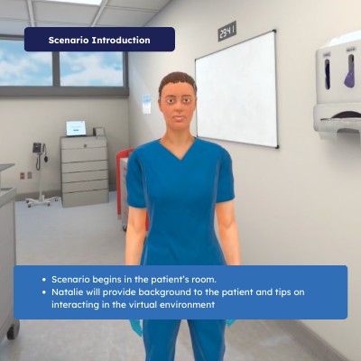 - Natalie will provide background to the patient and tips on interacting in the virtual environment