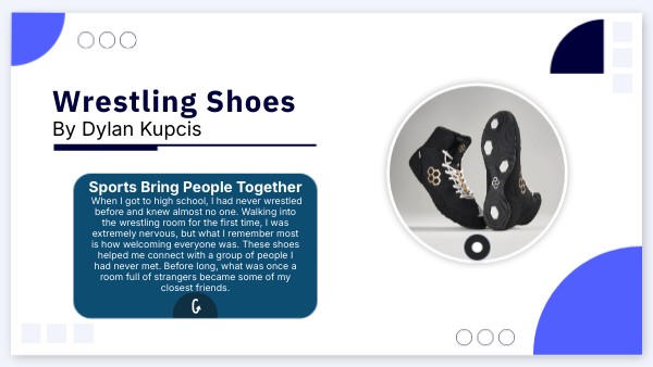 When I got to high school, I had never wrestled before and knew almost no one. Walking into the wrestling room for the first time, I was extremely nervous, but what I remember most is how welcoming everyone was. These shoes helped me connect with a group of people I had never met. Before long, what was once a room full of strangers became some of my closest friends.