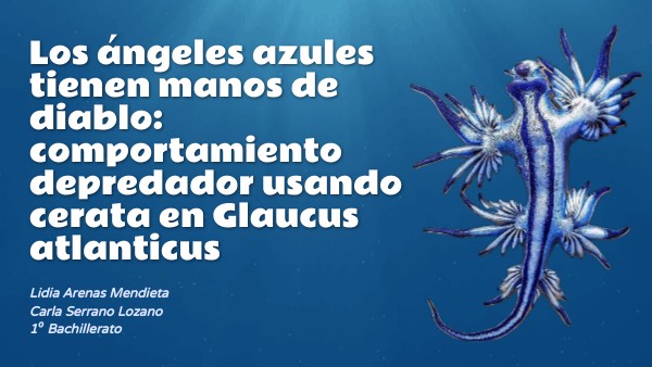 El artículo nos habla sobre el comportamiento depredador del Glaucus atlanticus,conocido como "ángel azul". Este nudibranquio, a diferencia de sus parientes que solo se alimentan de ciertos animales, tiene una dieta generalista : comiendo medusas, peces y otros cnidarios. Para cazar, utiliza cerata (sus apéndices), como si fueran una especie de "manos" para capturar a sus presas. Además de cazar también puede usar nematocistos (células urticantes) de las medusas venenosas que consume para su propia defensa. Este estudio nos dice que alimentación es más variada de lo que se creía y que los cerata cumplen un papel muy importante tanto en la depredación como en la defensa.