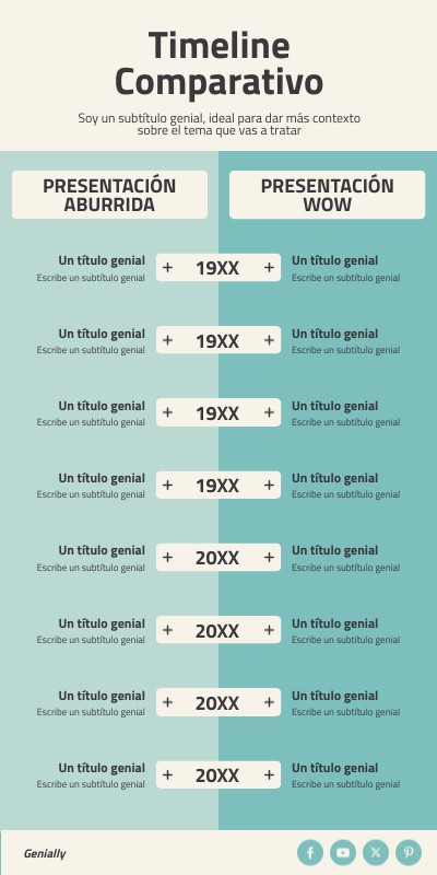 Con las plantillas de Genially podrás incluir recursos visuales para dejar a tu audiencia con la boca abierta. También destacar alguna frase o dato concreto que se quede grabado a fuego en la memoria de tu público e incluso embeber contenido externo que sorprenda: vídeos, fotos, audios... ¡Lo que tú quieras!