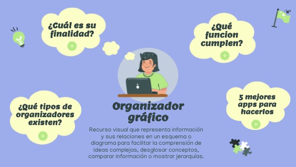 Un organizador gráfico cumple la función de estructurar y visualizar información, facilitando la comprensión, el análisis y la conexión entre ideas complejas de una manera clara y ordenada.
