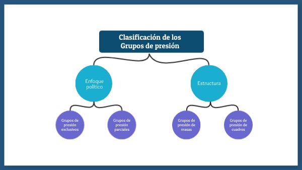 Poseen otros medios de acción y a veces intervienen cerca del gobierno, aunque persiguen mejoras salariales y sociales. Ejemplos: sindicatos obreros, iglesias, asociaciones civiles, grupos empresariales.