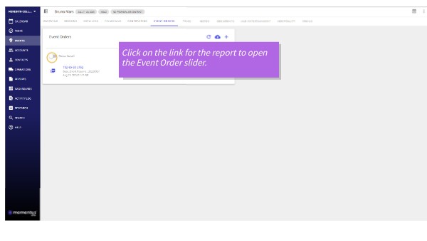 Click on the link for the report to open the Event Order slider.