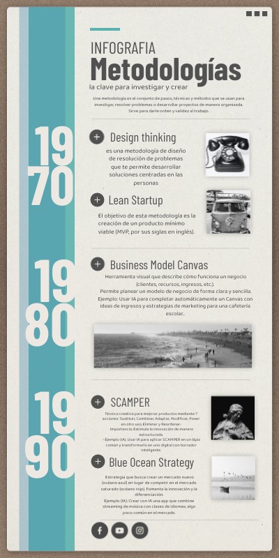 Herramienta visual que describe cómo funciona un negocio (clientes, recursos, ingresos, etc.). Permite planear un modelo de negocio de forma clara y sencilla. Ejemplo: Usar IA para completar automáticamente un Canvas con ideas de ingresos y estrategias de marketing para una cafetería escolar..