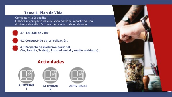 Competencia Específica:Elabora un proyecto de evolución personal a partir de una dinámica de reflexión para mejorar su calidad de vida.