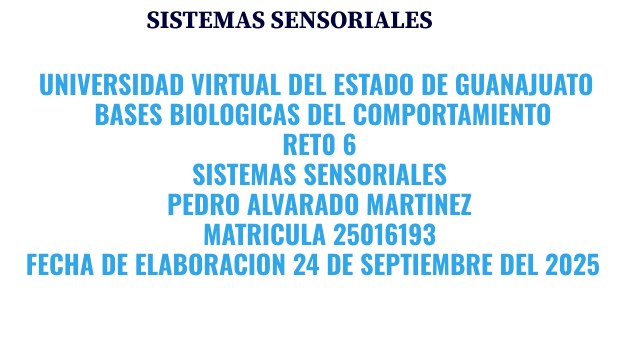 UNIVERSIDAD VIRTUAL DEL ESTADO DE GUANAJUATO BASES BIOLOGICAS DEL COMPORTAMIENTO RET0 6 SISTEMAS SENSORIALES PEDRO ALVARADO MARTINEZ MATRICULA 25016193 FECHA DE ELABORACION 24 DE SEPTIEMBRE DEL 2025