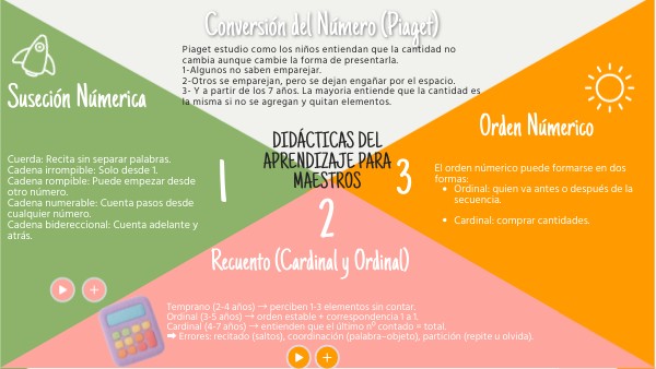 Ordinal (3-5 años) → orden estable + correspondencia 1 a 1.