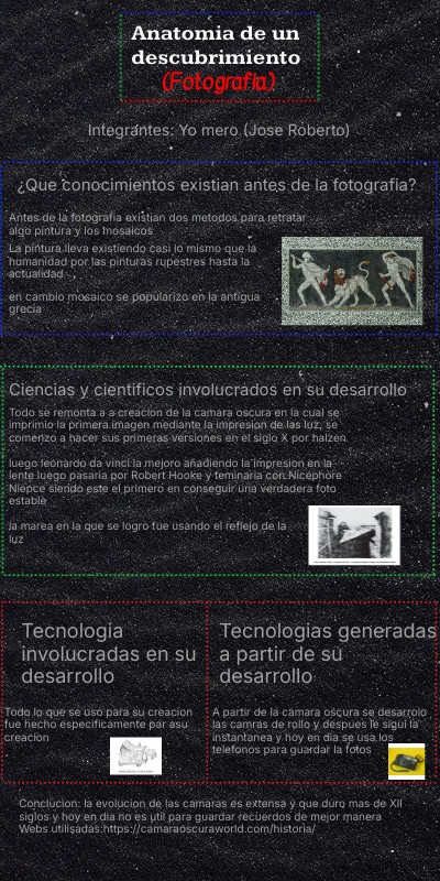 A partir de la camara oscura se desarrolo las camras de rollo y despues le sigui la instantanea y hoy en dia se usa los telefonos para guardar la fotos