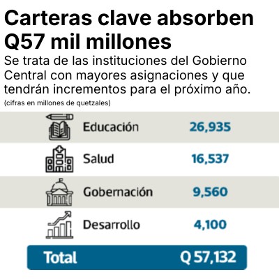 Se trata de las instituciones del Gobierno Central con mayores asignaciones y que tendrán incrementos para el próximo año.