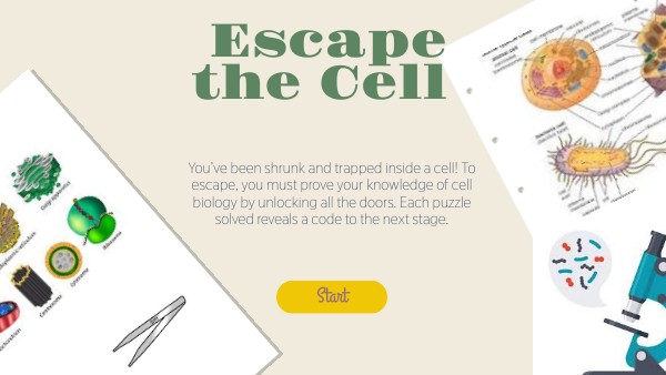 You’ve been shrunk and trapped inside a cell! To escape, you must prove your knowledge of cell biology by unlocking all the doors. Each puzzle solved reveals a code to the next stage.