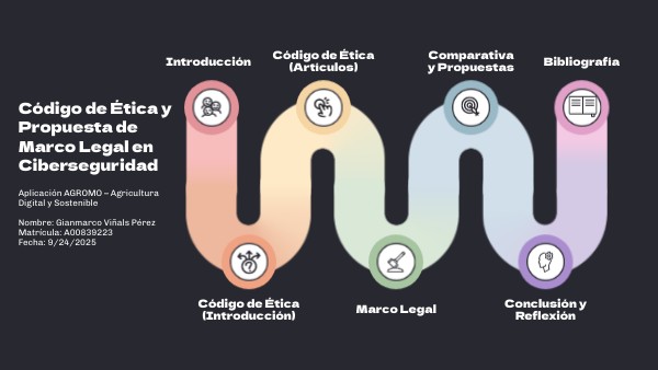 El crecimiento de los sistemas digitales ha transformado sectores clave como la agricultura, pero también ha generado nuevas amenazas en el ámbito cibernético. En México, la ausencia de un marco legal integral de ciberseguridad limita la protección de los ciudadanos y de las instituciones frente a delitos informáticos cada vez más complejos. Por ello, resulta indispensable complementar los desarrollos tecnológicos, como AGROMO, con un código de ética profesional y con propuestas legales que garanticen un entorno digital seguro, confiable y sostenible.