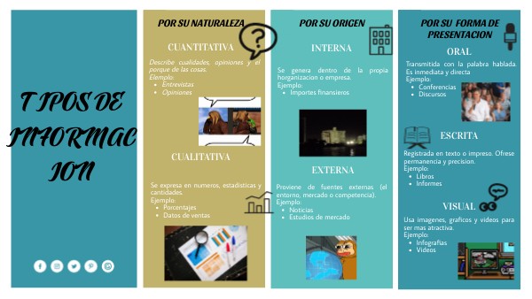 Incluye datos sobre caracteristicas de personas, grupos o fenomenos.Ejemplo: