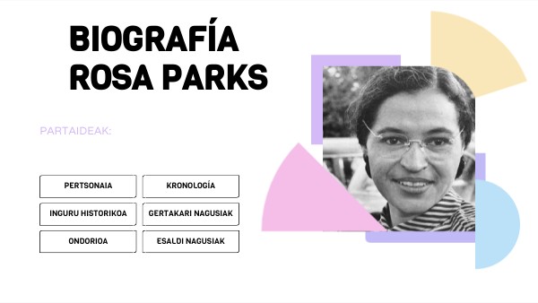 Rosa parks estatu batuko emakume bat zen. Jaio zen 1913eko otsailaren 4an eta hil zen 2005eko urriaren . Garai hoietan razismo handi bat zegoen. beltzas adibidez autobusean atzeko partean jarri behar zenuten. Rosa parks aurrean jesarri zuen eta zuri bat esan zuen atzoko partean jesarri behar zuen eta rosa ukatu zen. Hori notizian agertu zen eta zalaparta oso handi eragin zen.