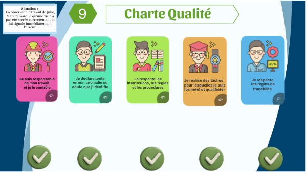 Situation : En observant le travail de Julie, Marc remarque qu’une vis n’a pas été serrée correctement et lui signale immédiatement l’erreur.