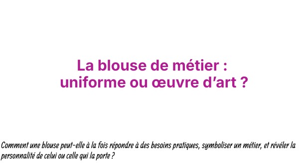 Comment une blouse peut-elle à la fois répondre à des besoins pratiques, symboliser un métier, et révéler la personnalité de celui ou celle qui la porte ?