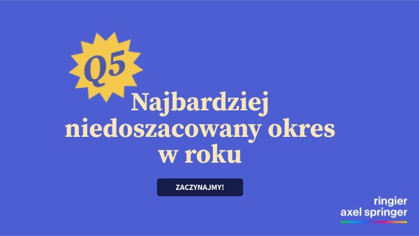 Większość reklamodawców zwalnia tempo i wykorzystuje ten czas na planowanie nowego roku. Dla Ciebie oznacza to mniejszą konkurencję i lepsze dotarcie do odbiorców!