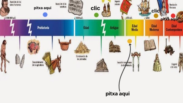 - Edad dels metalls:l'edad de coure, l'edad de bronce i la edad de ferro