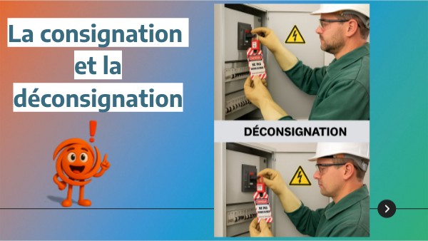 La consignation, c’est l’ensemble des opérations qui permettent de mettre une installation hors tension et de garantir qu’elle ne pourra pas être réalimentée par accident.