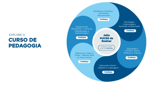 Explore o nosso Modelo Educacional, que traduz a essência de ensinar e aprender na PUCRS. Ele é a base de todos os nossos cursos e expressa o DNA de uma das melhores universidades do Brasil, unindo inovação, pesquisa e formação integral em sintonia com os principais modelos de ensino do mundo. É um jeito único de formar pessoas criativas, éticas e empreendedoras, prontas para transformar a sociedade.
