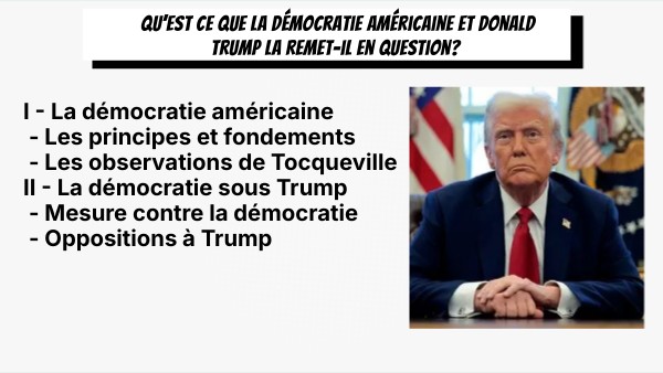 I - La démocratie américaine - Les principes et fondements - Les observations de Tocqueville II - La démocratie sous Trump - Mesure contre la démocratie - Oppositions à Trump