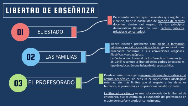 De acuerdo con las leyes nacionales que regulen su ejercicio, tiene la posibilidad de creación de centros docentes dentro del respeto de los principios democráticos (libertad de crear centros públicos, privados o concertados).