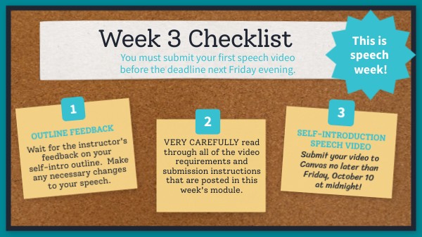 Wait for the instructor's feedback on your self-intro outline. Make any necessary changes to your speech.