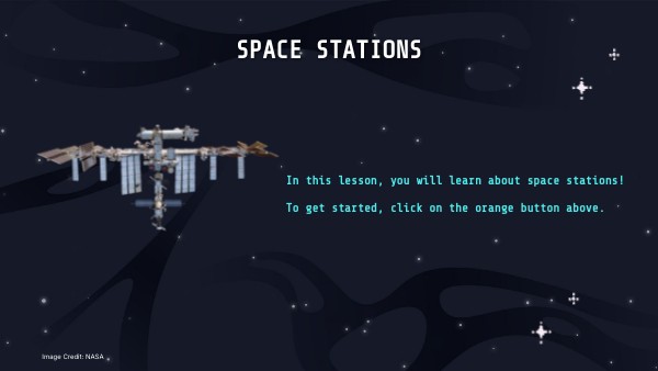 In this lesson, you will learn about space stations! To get started, click on the orange button above.