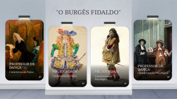 O professor de dança bajula o Mr. Jourdain, mesmo quando ele não tem talento, porque quer continuar a ser pago. As suas falas e métodos exagerados mostram o quanto a preocupação com as aparências pode ser ridícula. A forma como ensina Jourdain a mover-se provoca risos, pois revela o contraste entre a simplicidade do protagonista e a sofisticação forçada que ele deseja alcançar. Demonstrando assim um caracter bajulador, interesseiro e ridículo.