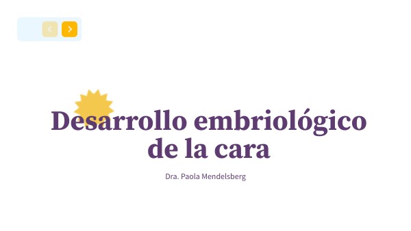 La cara se forma entre la cuarta y octava sdg, gracias al desarrollo de 5 procesos faciales: 1 frontonasal 2 maxilares 2 mandibulares Estos procesos faciales se frman or la división y el crecimiento de las células mesenquimales de la zona