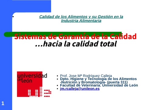 Sistemas de Garantía de la Calidad …hacia la calidad total
