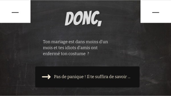 Ton mariage est dans moins d'un mois et tes idiots d'amis ont enfermé ton costume ?