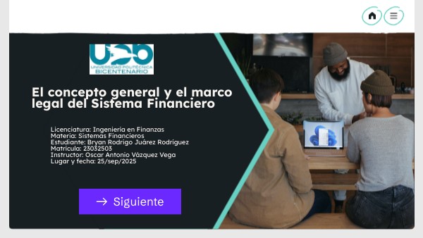 Licenciatura: Ingeniería en FinanzasMateria: Sistemas Financieros Estudiante: Bryan Rodrigo Juárez Rodríguez Matrícula: 23032503 Instructor: Oscar Antonio Vázquez Vega Lugar y fecha: 25/sep/2025