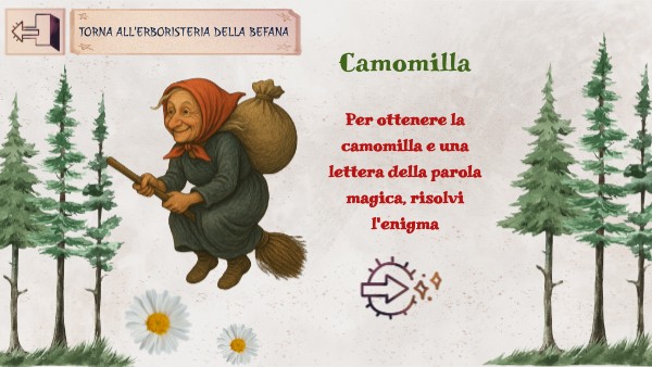 Per ottenere la camomilla e una lettera della parola magica, risolvi l'enigma