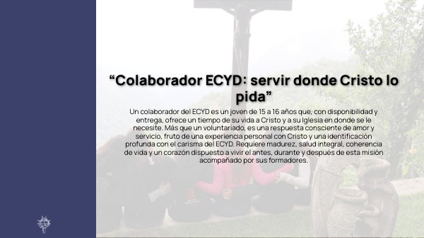 “La experiencia del colaborador es similar a la de Pedro, a quien Cristo invita a remar mar adentro, a pasar de ser un simple pescador a ser un pescador de hombres.”