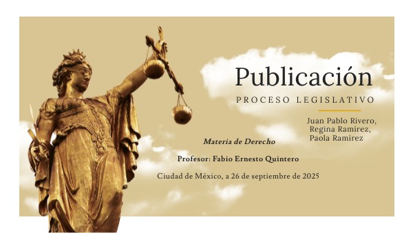 I) Es la etapa en la que una ley aprobada y promulgada se da a conocer oficialmente al público. - Se realiza a través de un medio oficial: Diario Oficial de la Federación - Es necesaria para que la ley sea válida, conocida y aplicable. {Sin publicación, la ley no tiene efecto jurídico }