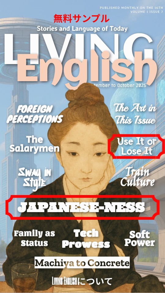 Living Englishは、Mr. DerekとAIアシスタントが共同で制作するデジタル英語学習マガジンです。最新のストーリーやニュース、インスピレーションを通じて、“今”を感じる生きた英語を届けます。実践的なツールや学習ガイドも豊富に取り揃え、毎月新しい号を発行しています。 対象は、英語上級者を目指す中上級レベルの学習者。ネイティブレベルのコンテンツに挑戦したいけれど、まだ壁を感じている方にとって、本誌はそのギャップを埋める架け橋となるでしょう。 本記事を除き、すべてのコンテンツは英語で始まりますが、必要に応じて自然な日本語訳、ネイティブ音声、音読用ガイド、練習アクティビティなどをワンタップで利用できます。 まずは気軽に触れてみてください。英語に、そして世界に、一歩近づくきっかけになるはずです。 詳細はこちらのリンクをご覧ください: