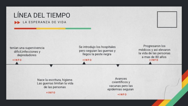 Esperanza de vida entre 20 y 25 años Las causas de las mueran por infecciones,partos,depredadores... Los avances de la prehistoria fueron el dominio del fuego, organizacion de tribu... Los descensos que tuvieron fueron las hambrunas y las catástrofe naturales