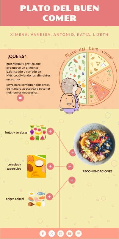 guia visual y grafica que promueve un alimento balanceado y variado en México, diviendo los alimentos en grupos sirve para combinar alimentos de manera adecuada y obtener nutrientes necesarios.