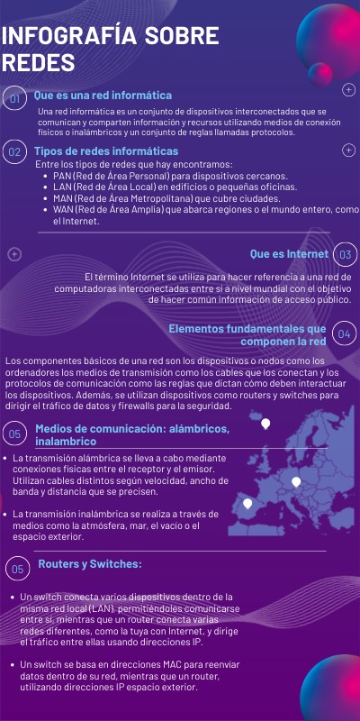 Entre los tipos de redes que hay encontramos:- PAN (Red de Área Personal) para dispositivos cercanos.