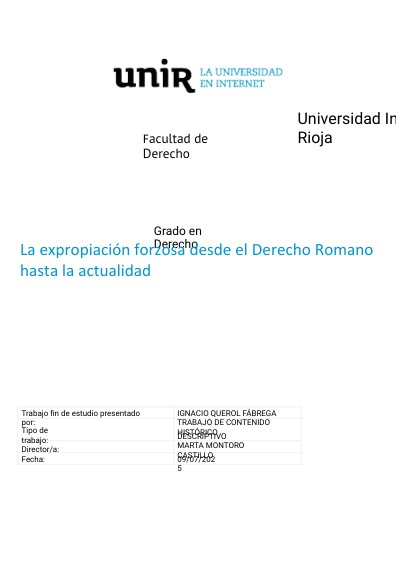 IGNACIO QUEROL FÁBREGA Expropiación forzosa desde Roma hasta la actualidad