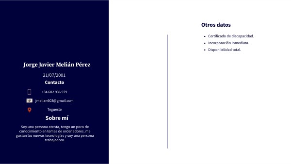 Soy una persona atenta, tengo un poco de conocimiento en temas de ordenadores, me gustan las nuevas tecnologías y soy una persona trabajadora.