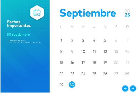 - Comienzo del curso (Del 30 de septiembre al 20 octubre de 2025).